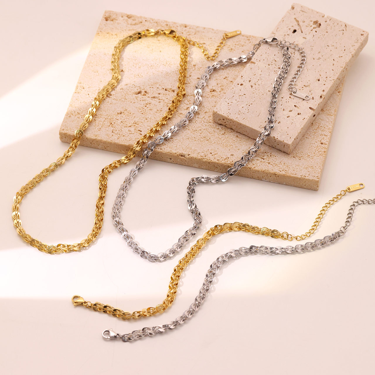 New light luxury niche design chain Fashion necklace women's all-match simple titanium steel jewelry cold style bracelet suit