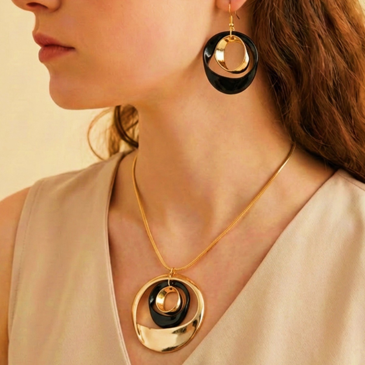 European and American Cross-Border French Light Luxury Irregular Twisted Ring Pendant Necklace Earrings Jewelry Set for Women Elegant Versatile