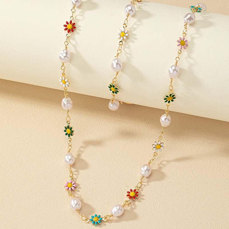 Korean style fashionable commuter colorful daisy bracelet necklace suit women's online red design love Pearl clavicle chain