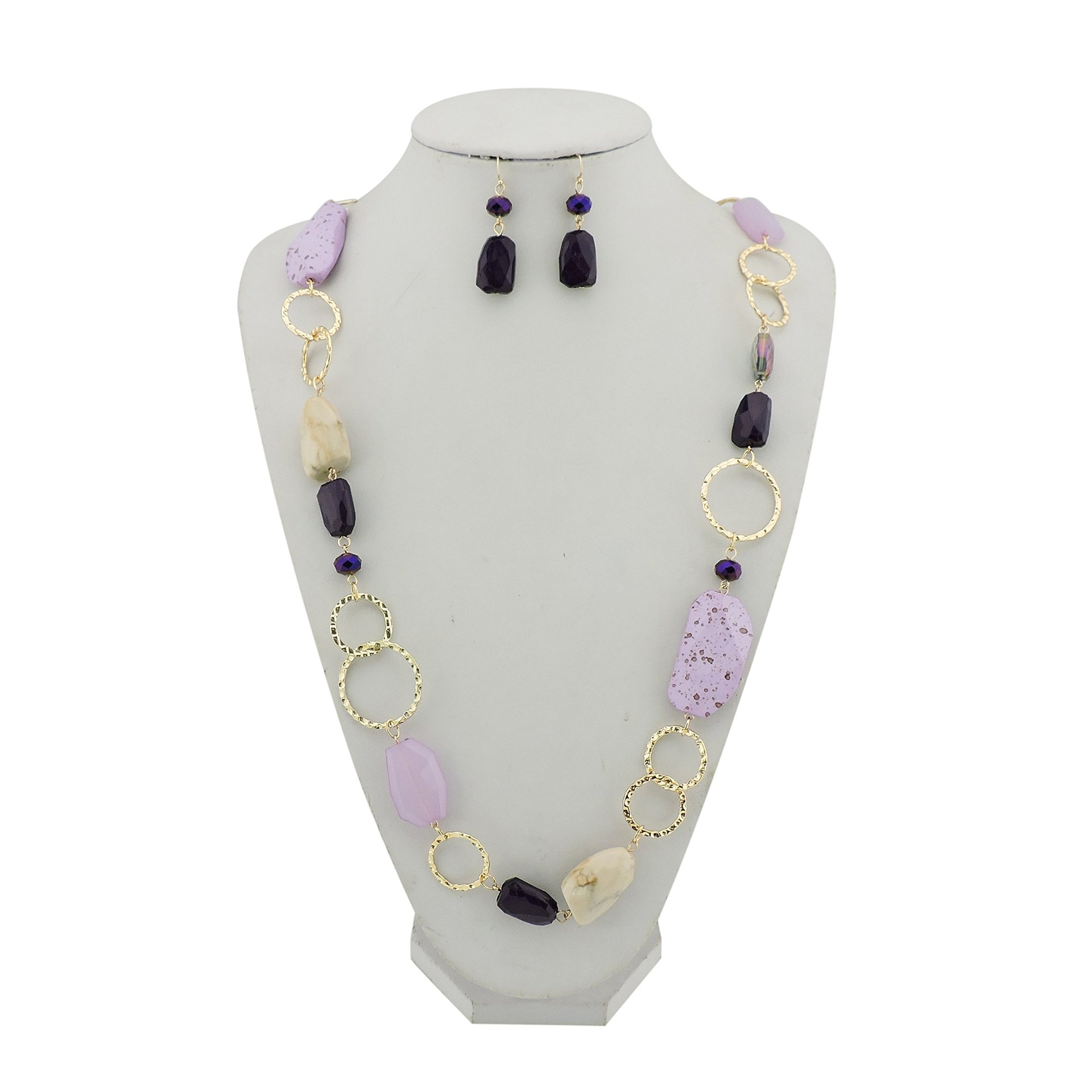 European and American fashion ethnic style imitation turquoise long necklace earrings suit acrylic texture all-match long necklace