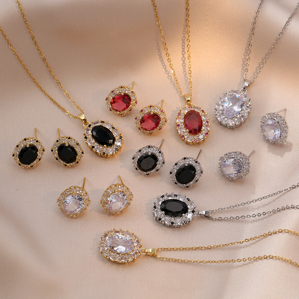 Cross-Border Square and Round Zircon Earrings Necklace Set French Accessible Luxury Versatile Clavicle Chain 2025 New High-End Jewelry