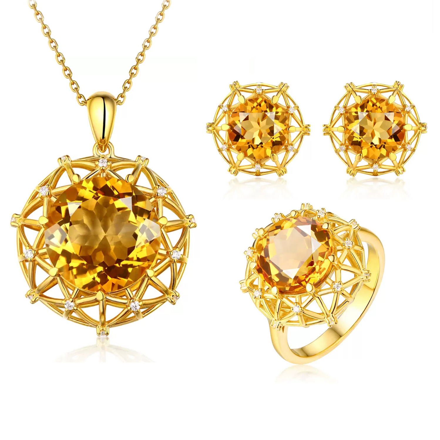 10 karat Super Large Imitation Natural Citrine Ring Bird's Nest Design Yellow Diamond Pendant Color Treasure Earrings Color Diamond suit