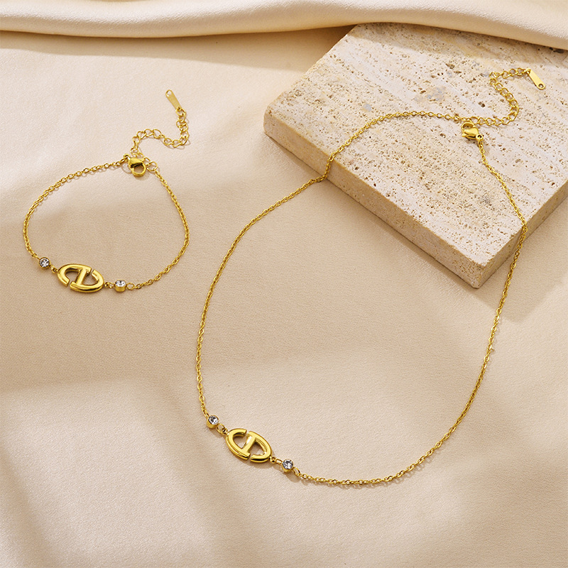 European and American Hot-Selling New Niche Design Pig Nose Cut Out Necklace Exquisite Fashion 18K Gold Plated Hand Jewelry Set