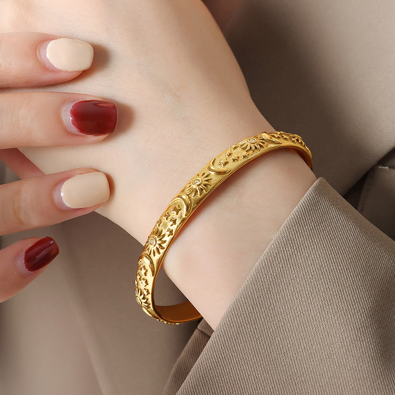 French court style non-fading elegant temperament ins style niche fashion bracelet embossed stereoscopic earrings set