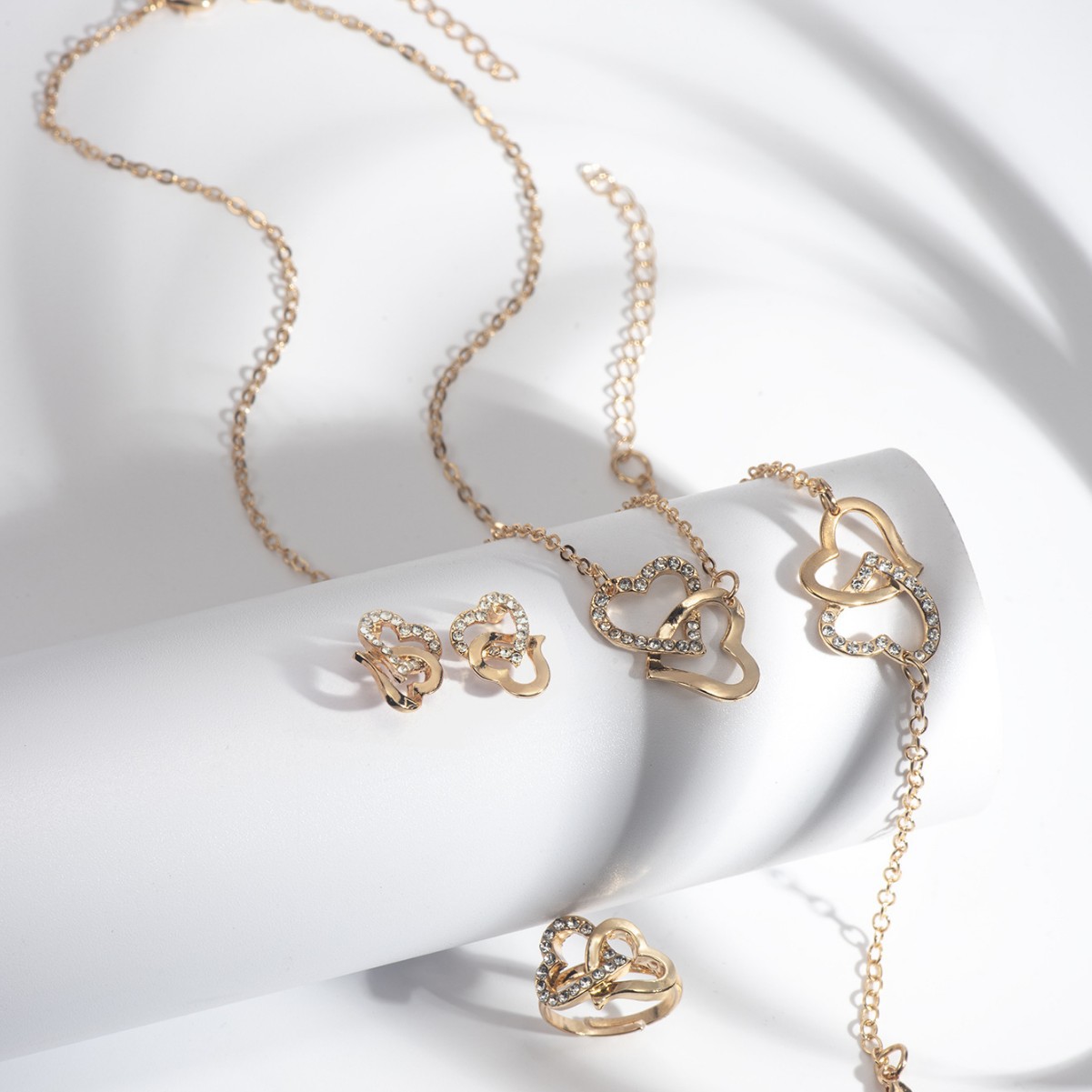 Love Necklace Peach Heart Women's Spring and Summer Light Luxury Niche Fashion Diamond Bracelet Ring Earrings Jewelry suit