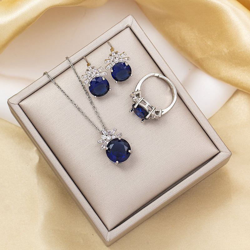 Europe and the United States high-grade flash diamond sapphire royal princess with earrings necklace suit cross-border jewelry explosions 3625