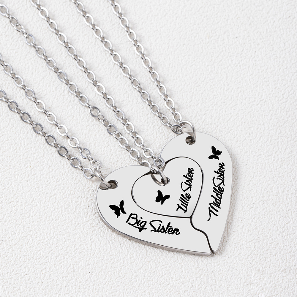 New three sisters butterfly stainless steel suit necklace peach heart letter butterfly stitching ornaments girlfriends sisters batch