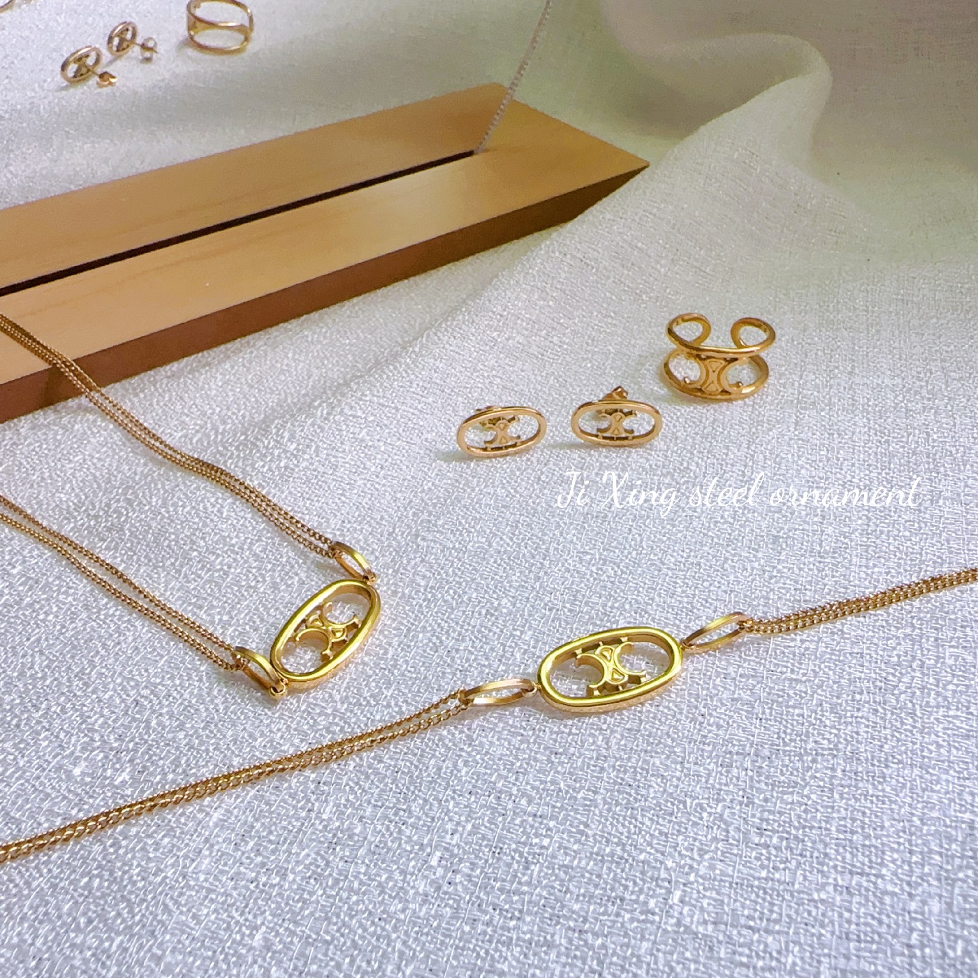 European and American big-name necklace star bracelet titanium steel earrings ring four-piece non-fading ins niche
