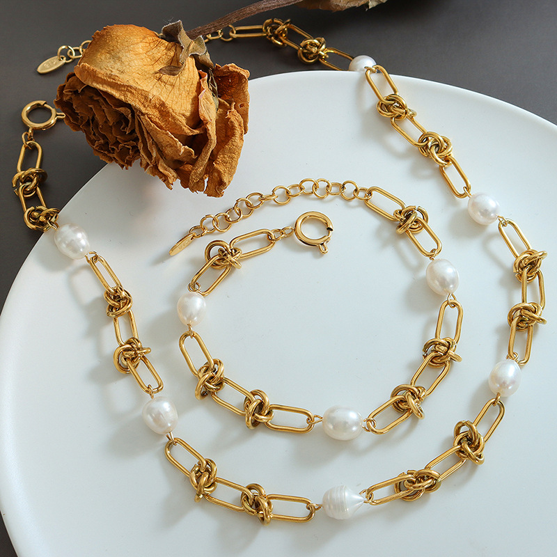 French Baroque Titanium Steel Niche Light Luxury Jewelry Freshwater Pearl Kink Earrings Bracelet Jewelry suit Girls