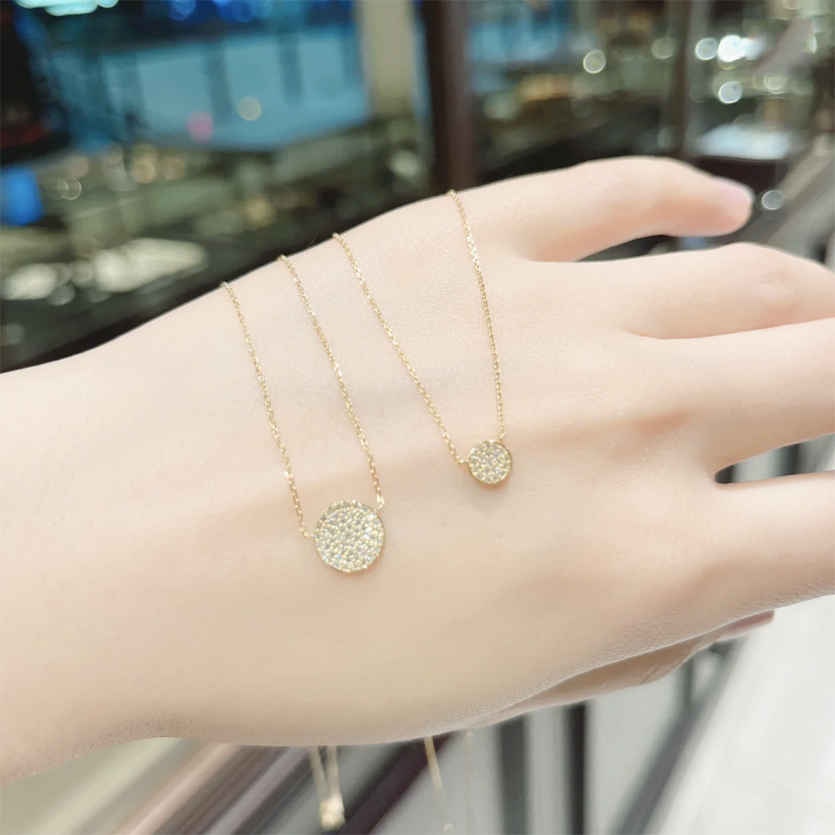 agete diamond round bracelet necklace jewelry suit 925 sterling silver plated 14K gold simple temperament all-match clavicle