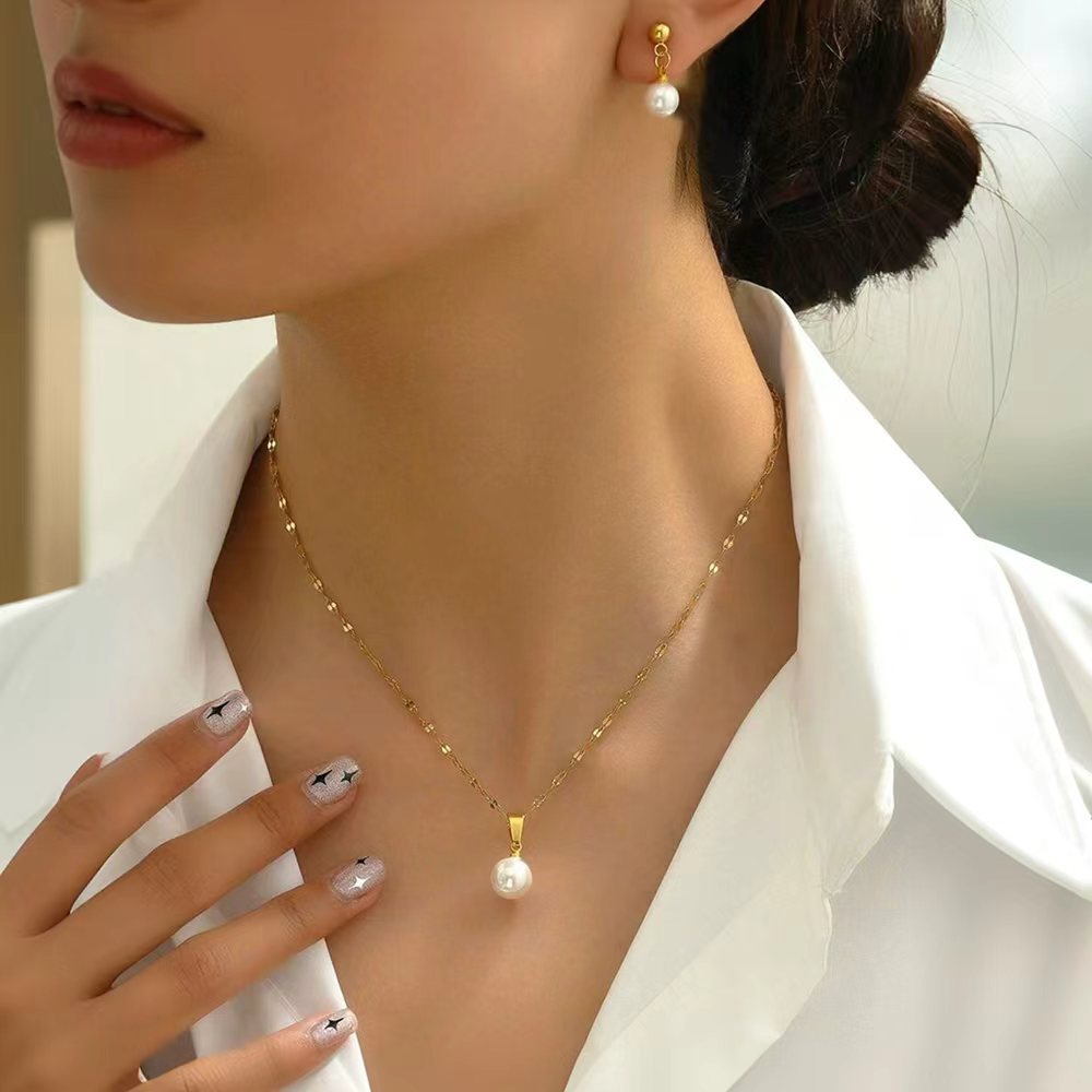 Stainless Steel Imitation Pearl Elegant Pendant Earrings Necklace Set Mother's Day Gift Fashionable Elegant High-End Jewelry