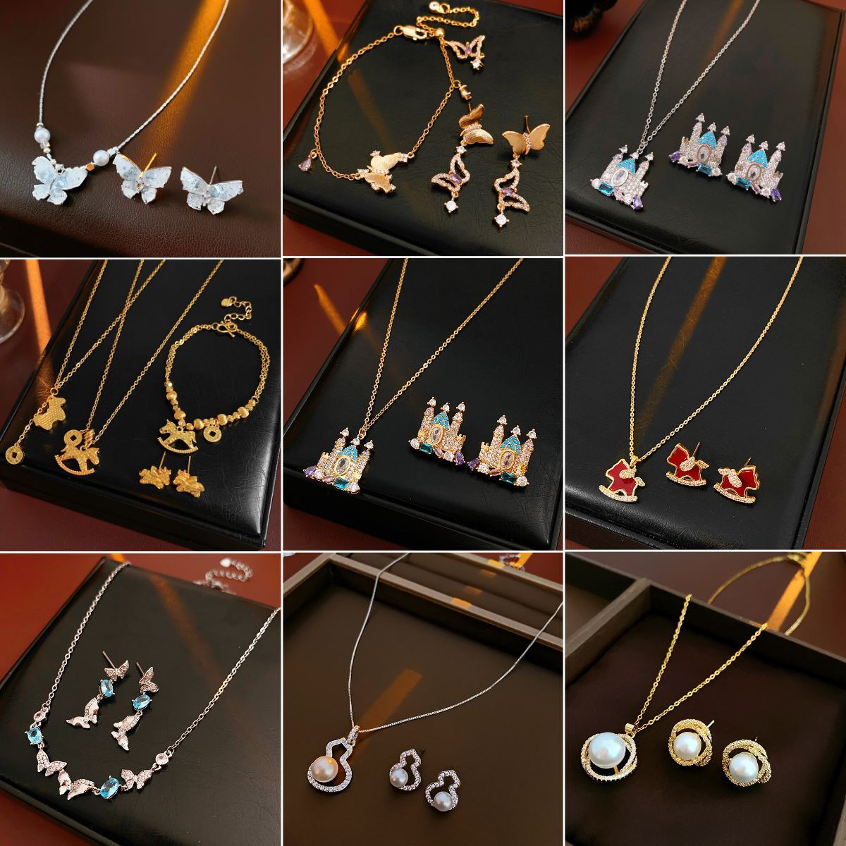 Cross-border Jewelry Butterfly Necklace Women's All-match High-end Earrings Pearl Earrings Pearl Necklace Jewelry suit