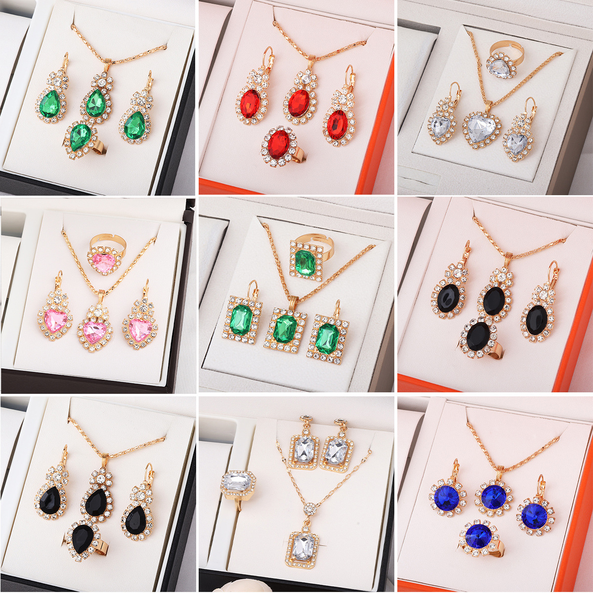 European and American Cross-Border Jewelry Pendant Earrings Ring Diamond Three-Piece Set Fashion Bridal Decoration Set