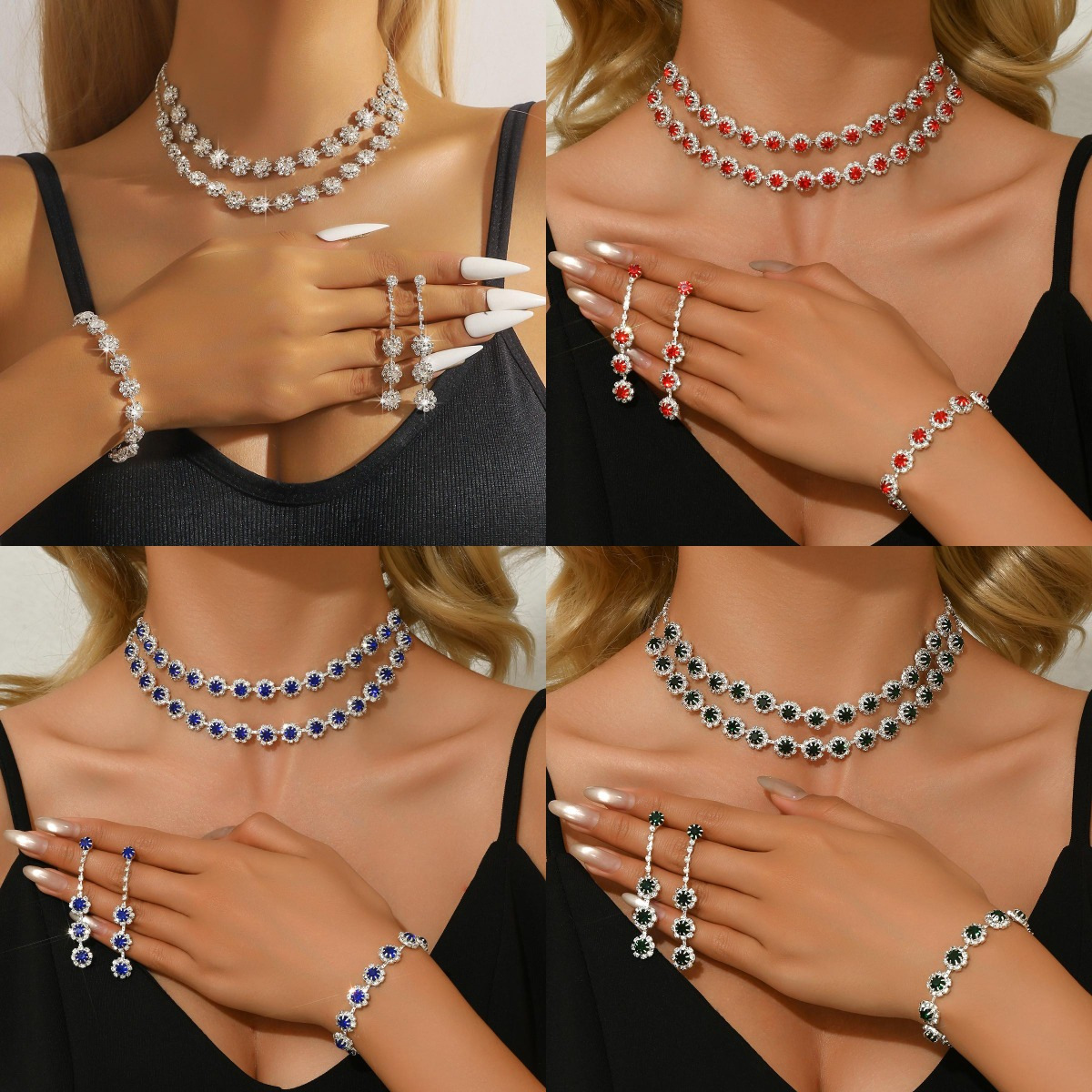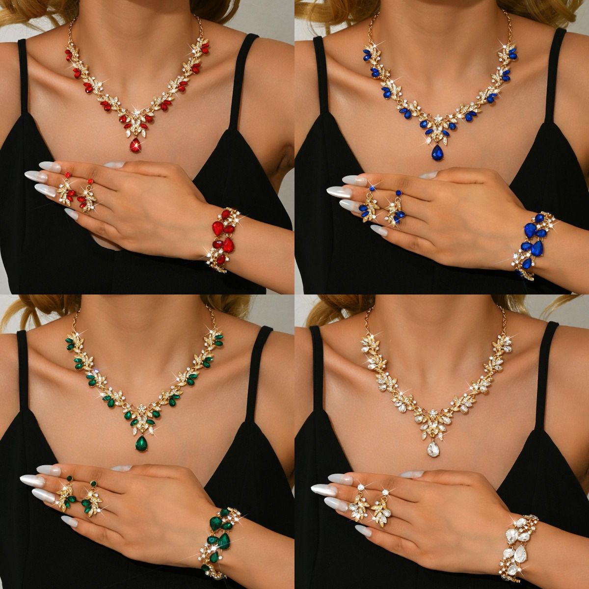 Hot Selling Simple suit Jewelry Fashion All-match Zircon Necklace Earrings Ring Bracelet Four-piece Jewelry in stock
