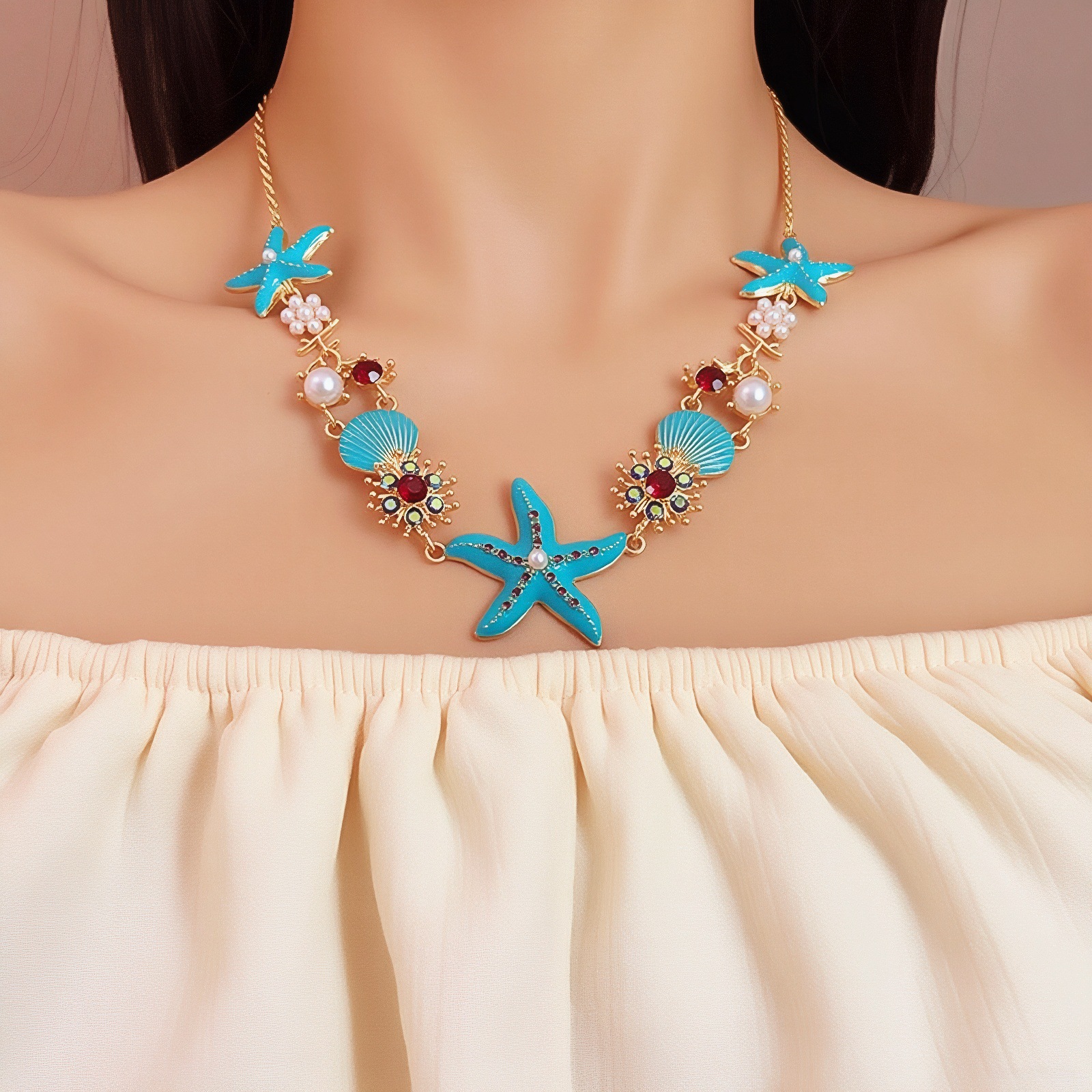 Cross-Border New Beach Starfish Shell Coral Bracelet Necklace Summer Casual Style Bohemian Style Clavicle Necklace