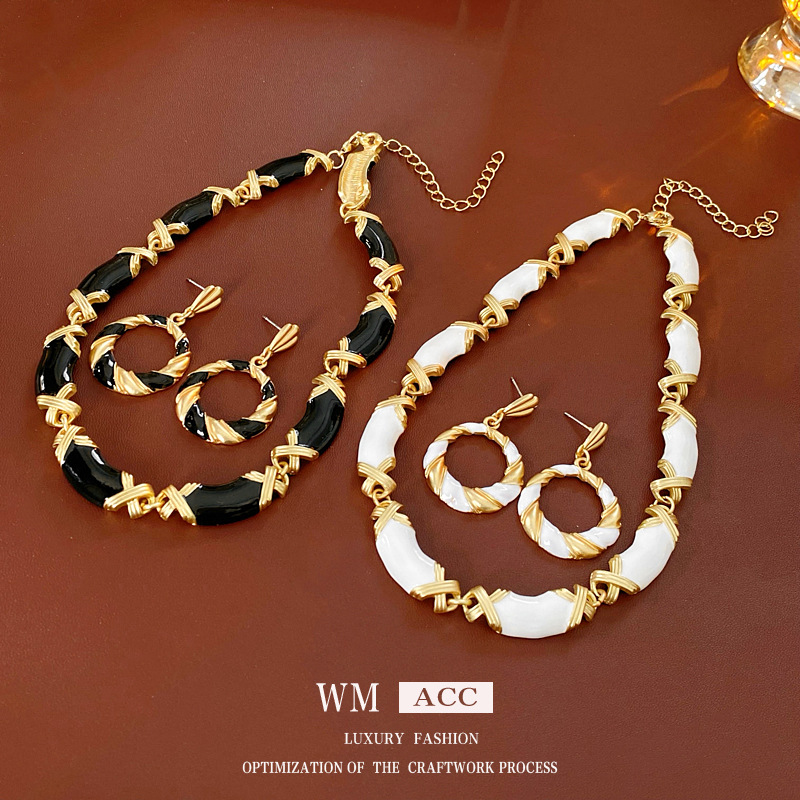 Medieval Vintage Jewelry Set Silver Needle Dripping Oil Twisted Geometric Earrings Necklace Retro High-End Accessible Luxury Product