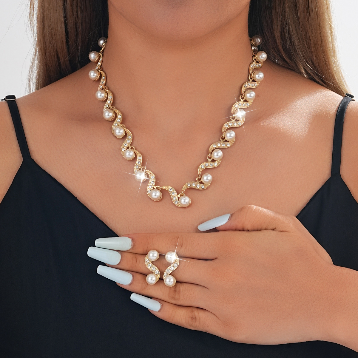 Cross-Border Popular Retro Pearl Necklace and Earrings Set for Women Two-Piece Bridal Wedding Fashion Jewelry Accessories
