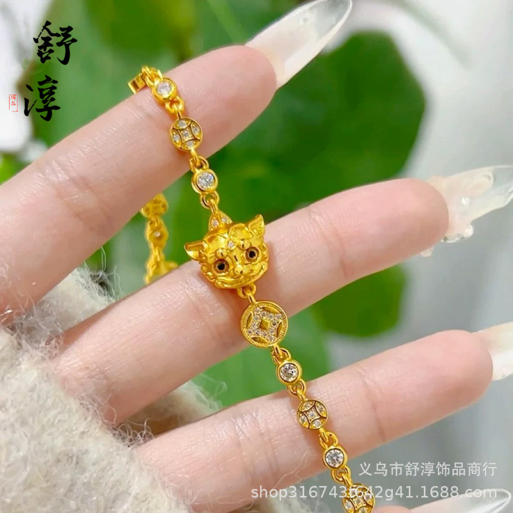 Strong color retention ancient gold diamond-encrusted brave bracelet Wei Xue same style diamond-encrusted brave necklace high-end female style