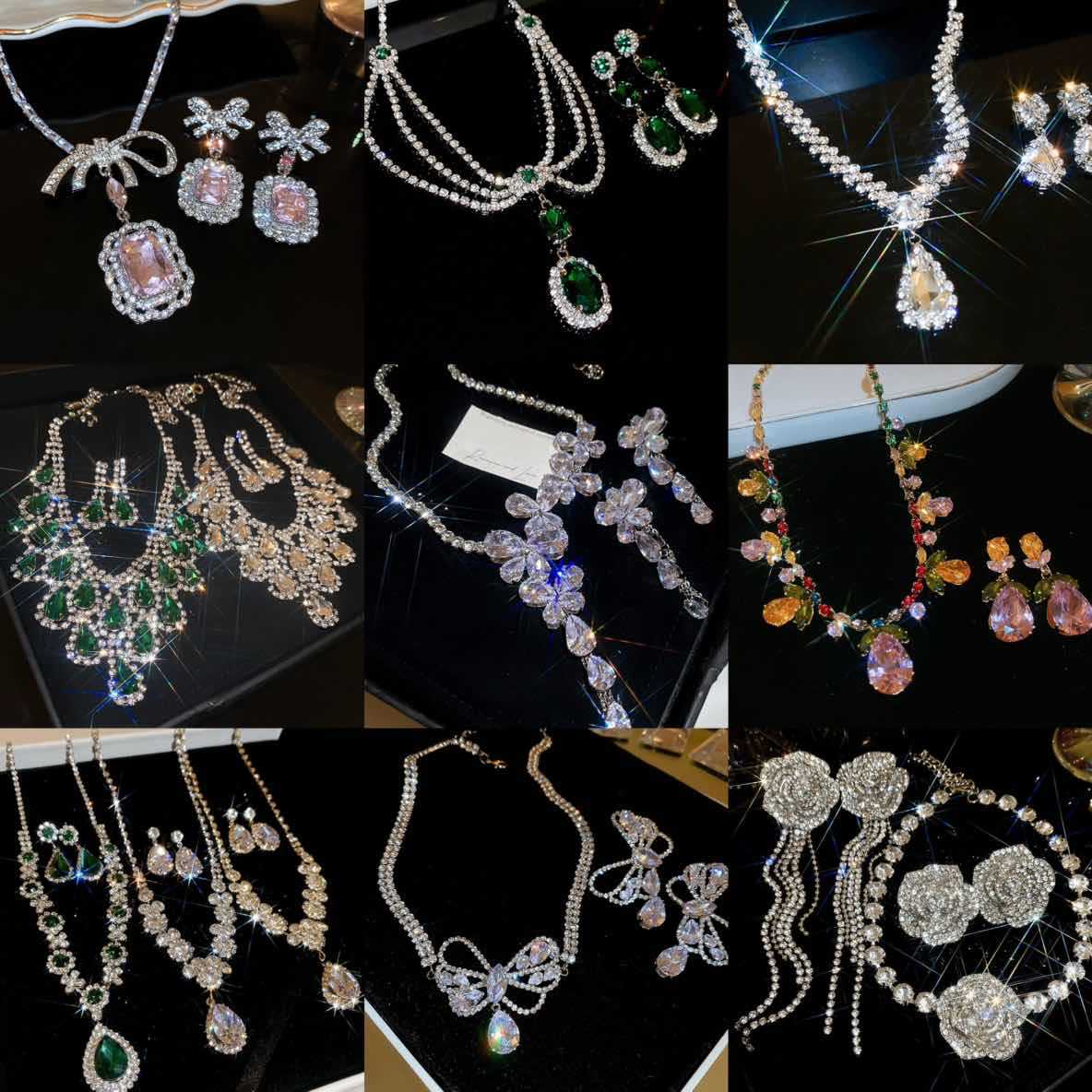 Zircon Diamond clavicle chain simple Korean high carbon simulation diamond ring earring pendant three-piece birthday gift