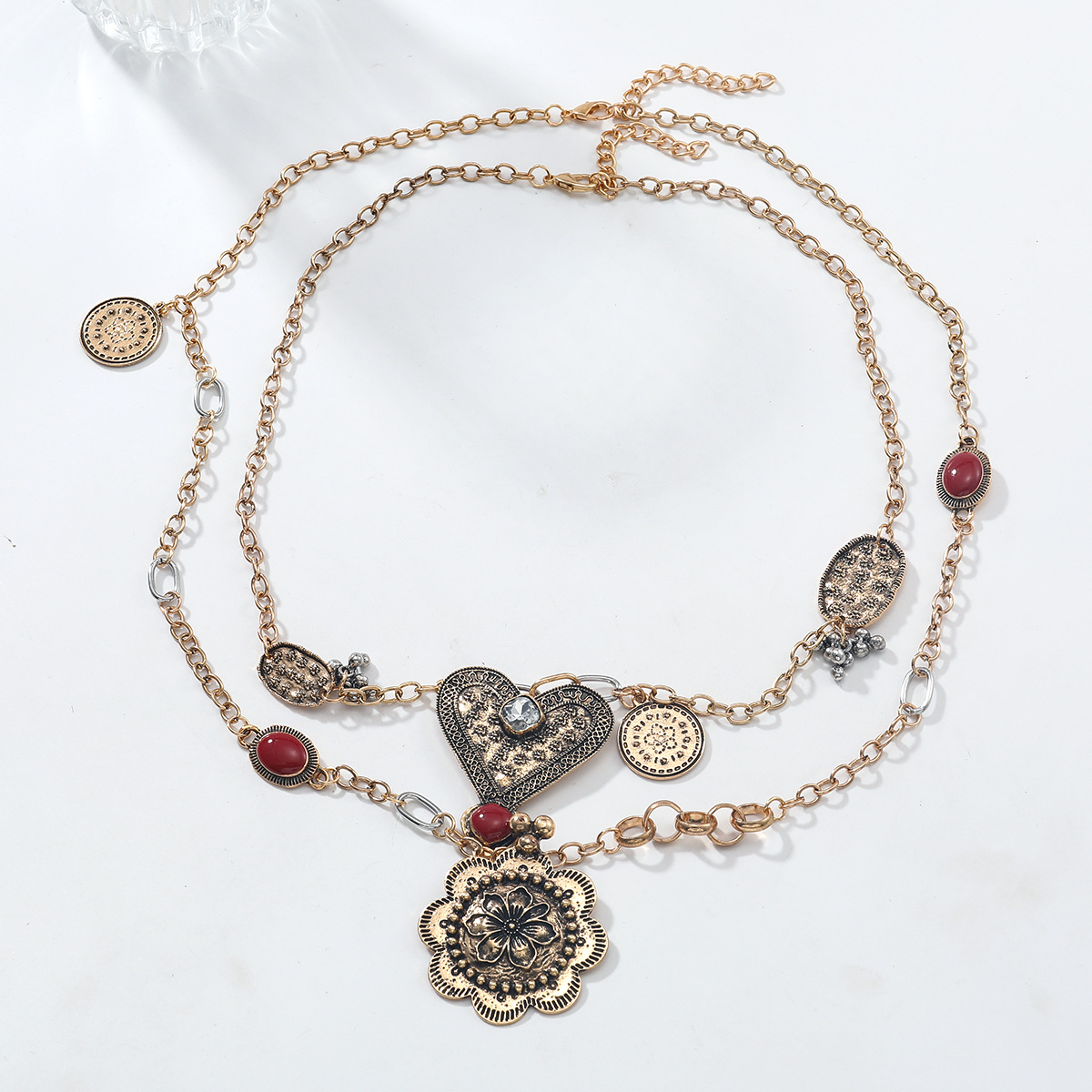 Za European and American Retro Stylish Heart Flower Pendant Necklace Two-Piece Coin Accessories Stacked Clavicle Chain Women's Fashion