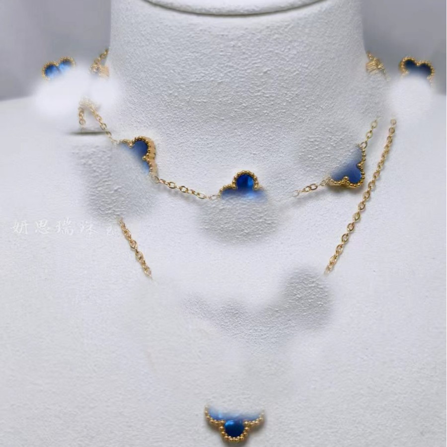 Amazon Cross-Border New Product Cartoon Blue Bear Micro-Set Diamond Oil Drop Bracelet Earrings Necklace Set Accessories