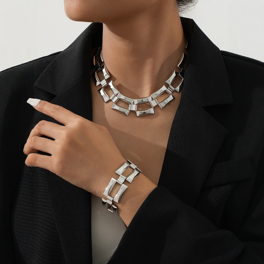 European and American Cross-border Trend silver Cuban Square Chain Hip Hop Fashion Simple Temperament Geometric Clavicle Chain Bracelet Gift