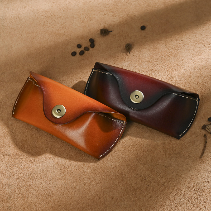 Ancient Chaoke Handmade Vintage Sunglasses Case Head Layer Cowhide Glasses Waist Bag Vegetable Tanned Leather Magnetic Buckle Glasses Bag