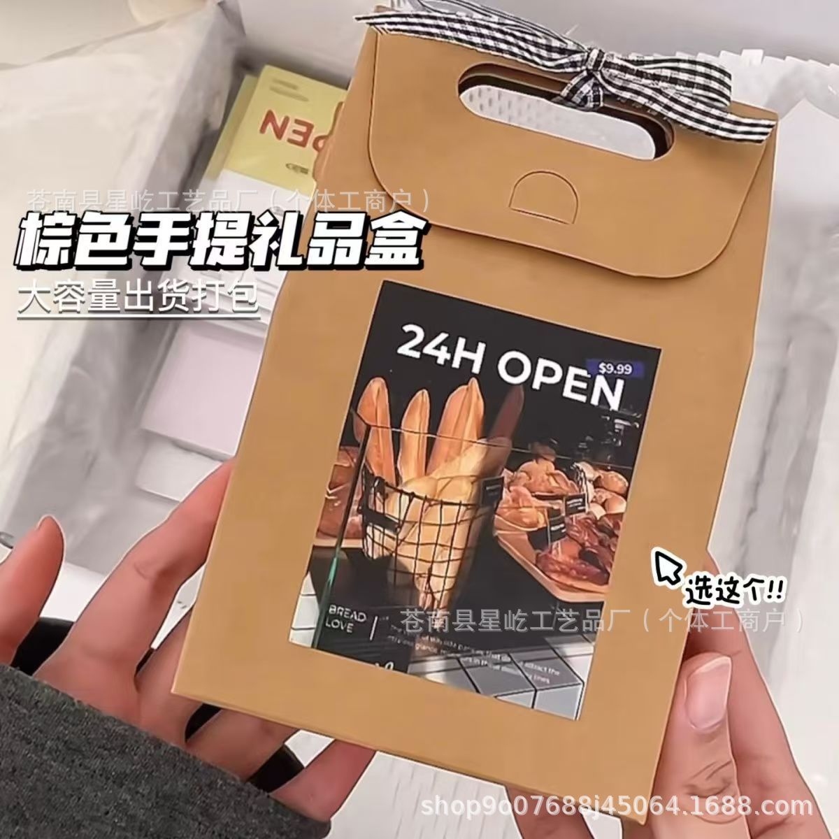 Retro Rectangular Brown Portable Gift Box High Color Value Large Capacity Shipment Packaging Material diy Kraft Paper Box