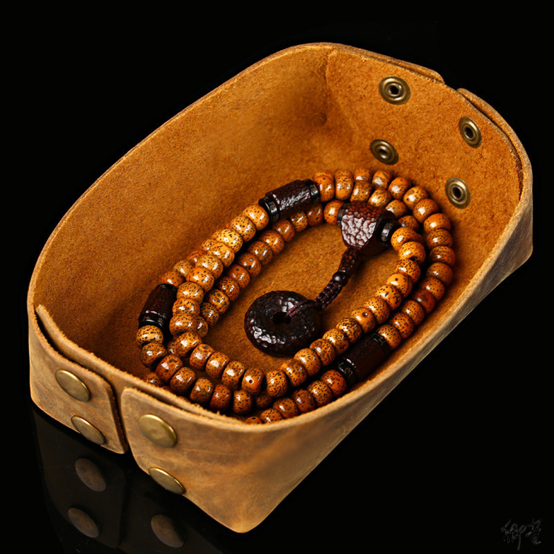 Wenwan box gift cowhide antique walnut hand Buddha beads jewelry box antique Chinese style plate display tray bag