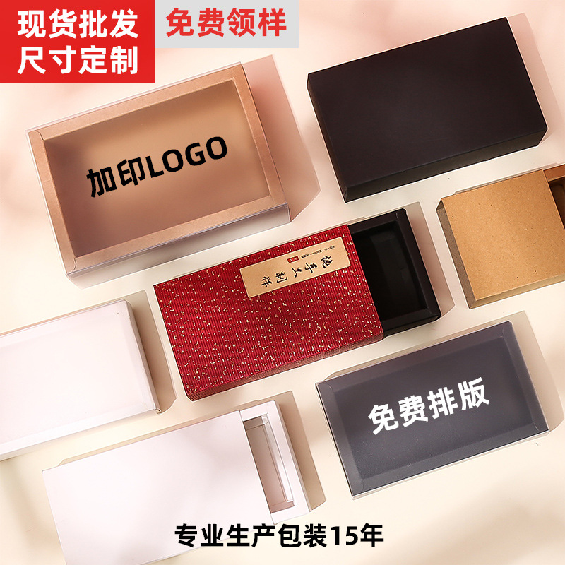 Spot Kraft Paper Box Drawer Box Donkey Hide Gelatin Cake Rectangular Gift Packaging Box Flower Tea Tea Small Gift Box