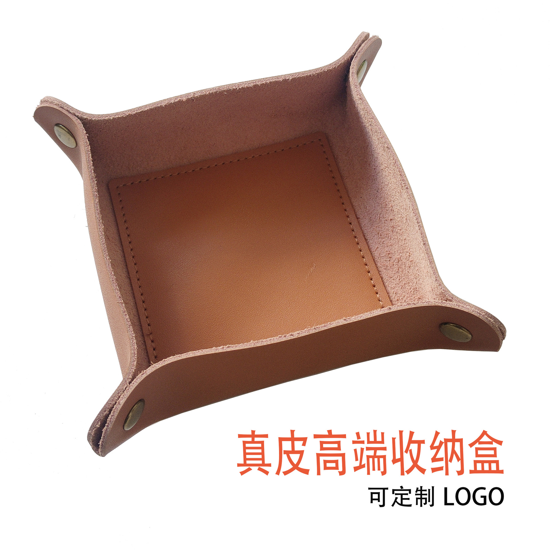 High-End Light Luxury Genuine Cowhide Storage Box, Retro Fashion Desktop Jewelry Cosmetics Miscellaneous Storage Tray, Leather Tray for Stationery