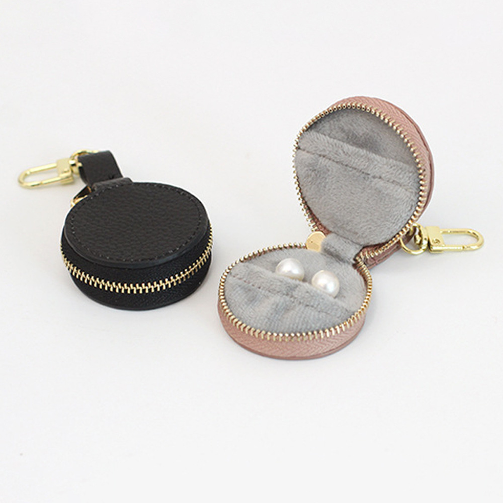 Genuine Leather Portable Mini Jewelry Box, Simple Jewelry Box, Earrings, Earrings, Ring Storage Box, Cowhide Zipper Small Bag