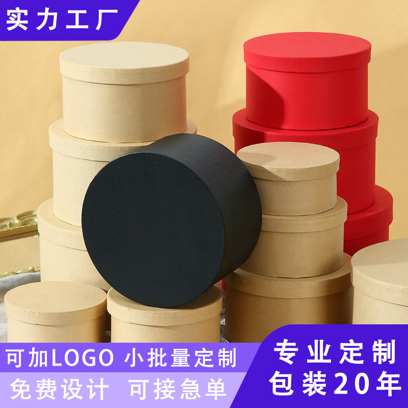 Red Round Kraft Paper Box Xiaohongshu Gift Box Ins Biscuit Box Furoshiki DIY Baking Christmas