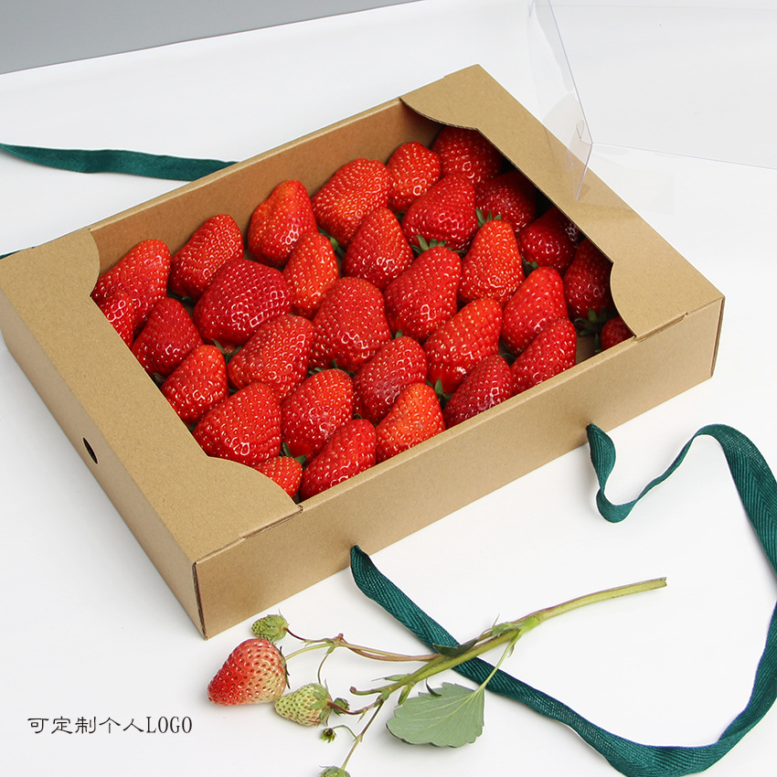 1.0-1.5kg Strawberry Packaging Boxes Cream Strawberry Carrying Box Transparent Small Tomato Fruit Kraft Paper Box
