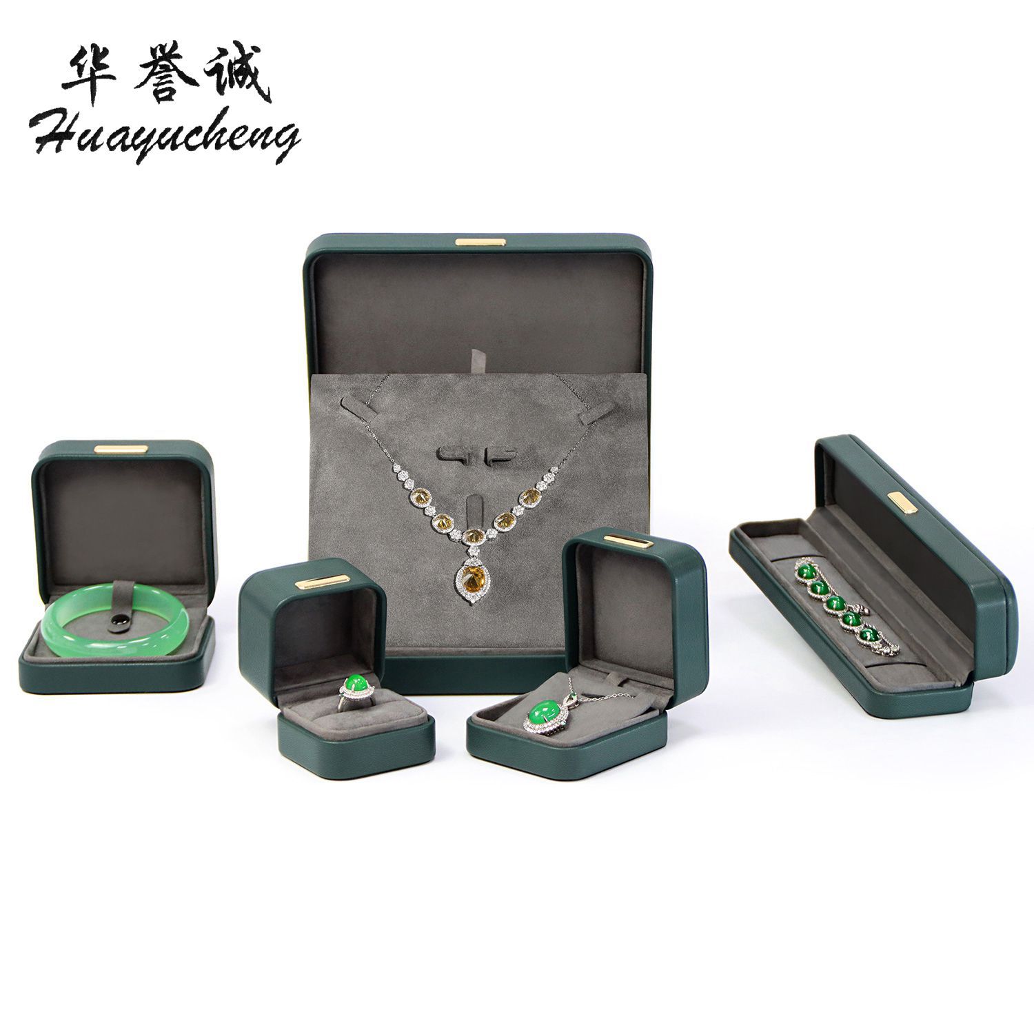 Dark green PU rounded vault necklace set box sheepskin texture ring pendant bracelet jewelry packaging box