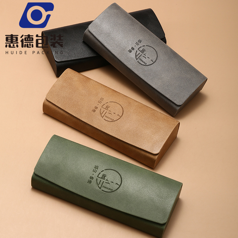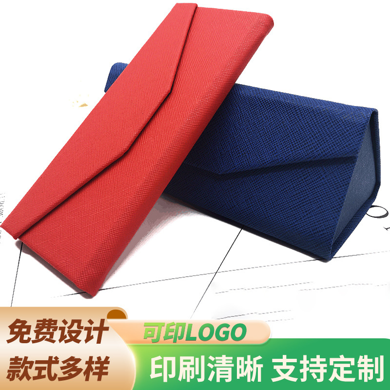 Manufacturer Supplies Triangular Folding Glasses Case, Fashionable and Made on Demand, Can Be Printed with Logo, Sunglasses Leather Surface Storage