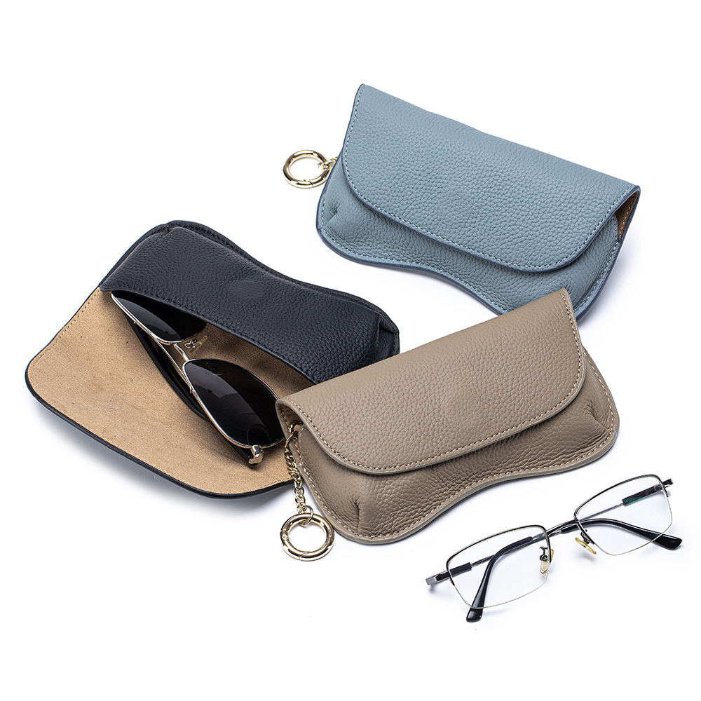 New Genuine Leather High-Value Glasses Case Niche Portable Sunglasses Storage Bag First Layer Cowhide Sunglasses Case Unisex Trendy