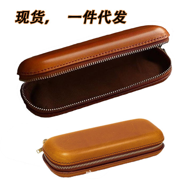 Cross-border hot selling first layer cowhide zipper men's and women's glasses case convenient anti-pressure leather myopia glasses storage box