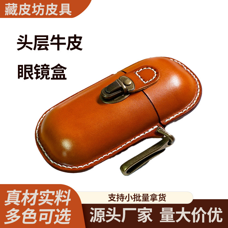 Cross-Border First-Layer Cowhide Glasses Case Creative Retro Portable Storage Box Sunglasses Glasses Sunglasses Dust-Proof Storage