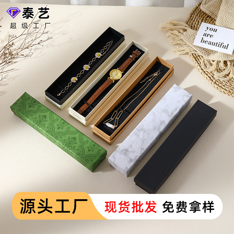 Manufacturer Sells Retro Black Cowhide Marble Bracelet Jewelry Packaging Box Bookmark Pendant Necklace Box Wholesale
