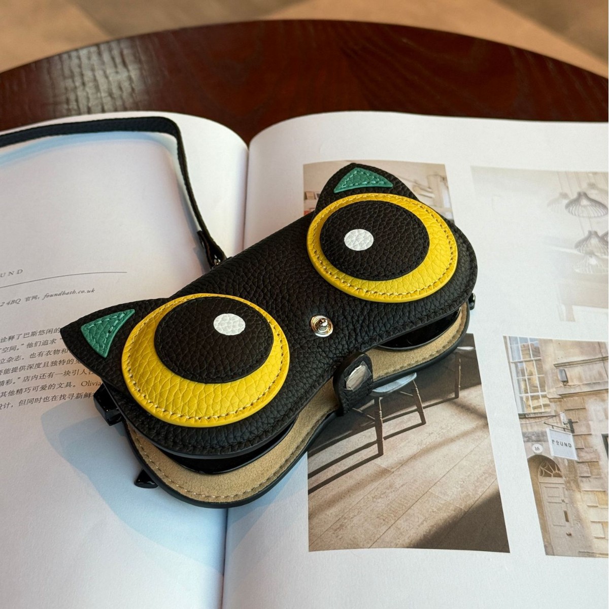 New Genuine Leather Creative Glasses Case Portable Sunglasses Storage Bag Advanced Sense Clip Mouth Sunglasses Case Women's Eyebrow Pen Case