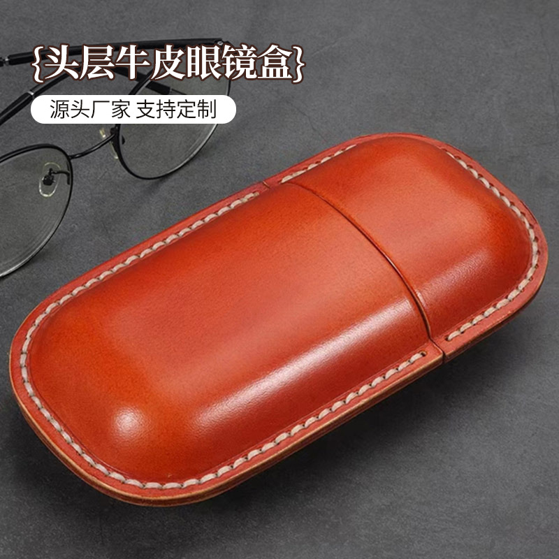 Manufacturer's Retro First-Layer Cowhide Glasses Case, Literary Glasses, Sunglasses, Capsule Storage Box, Student Myopia Glasses Storage Box