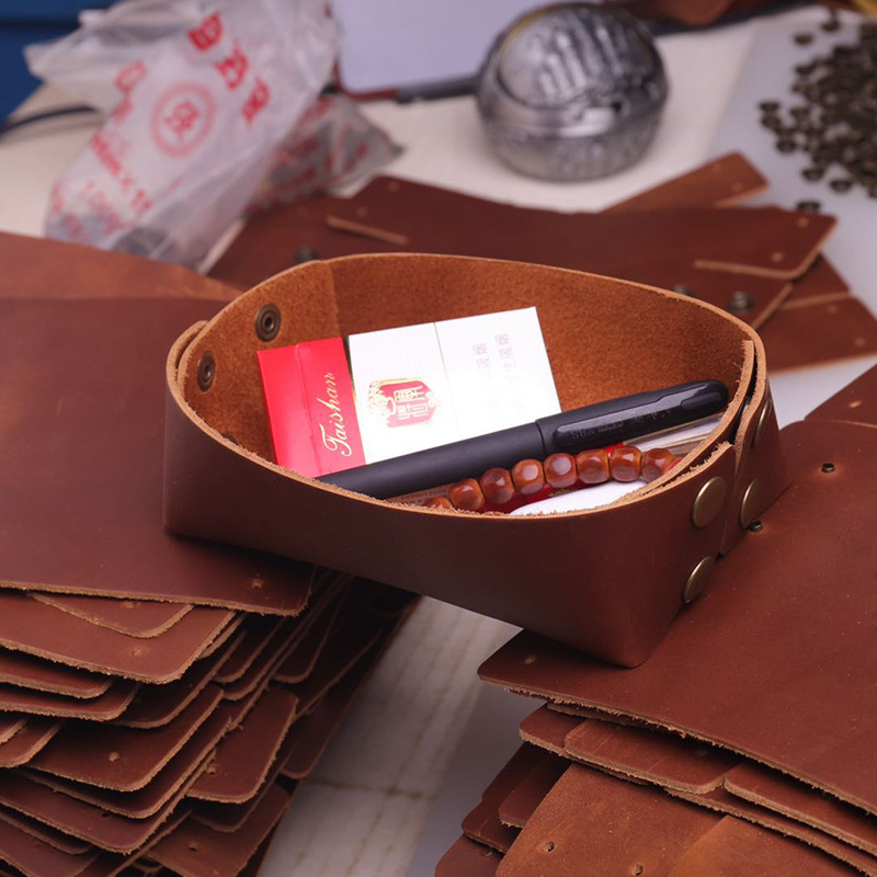 Factory source cowhide tray text play bracelet walnut key change storage bag anti-collision Manual storage box