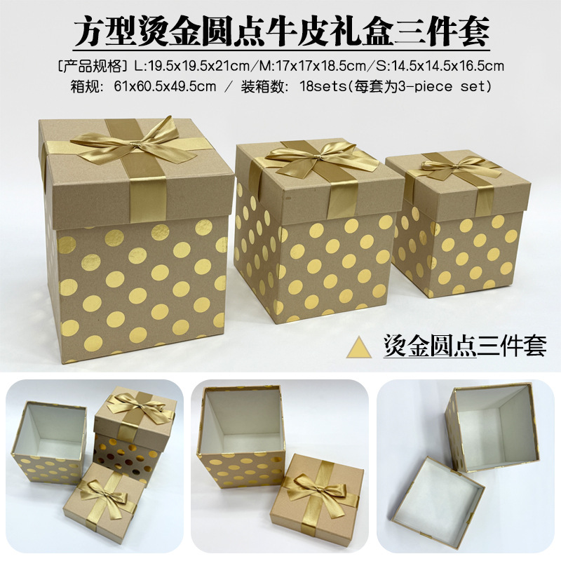 Square Hot Stamping Polka Dot Cowhide Gift Box Three-Piece Birthday Gift Gift Box Souvenir Paper Box Wholesale Flower Box
