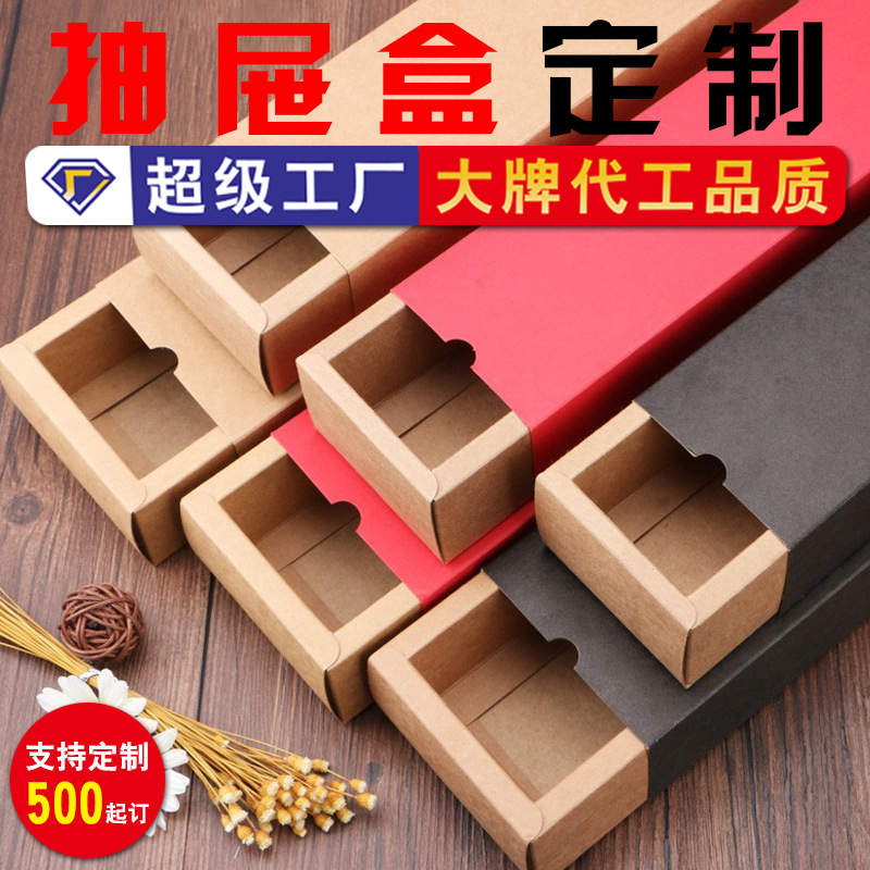 Small Kraft Paper Box Drawer Box Rectangular Tea Packaging Box Socks Cosmetics Donkey Hide Gelatin Cake Gift Box Wholesale