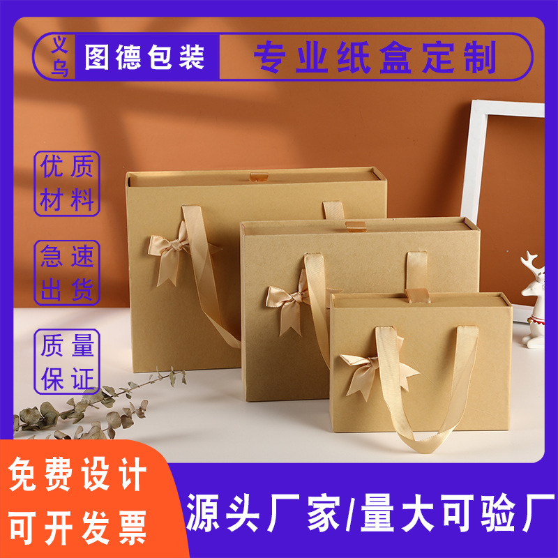Custom large cowhide paper box thermos box custom LOGO drawer box retro portable gift box empty box