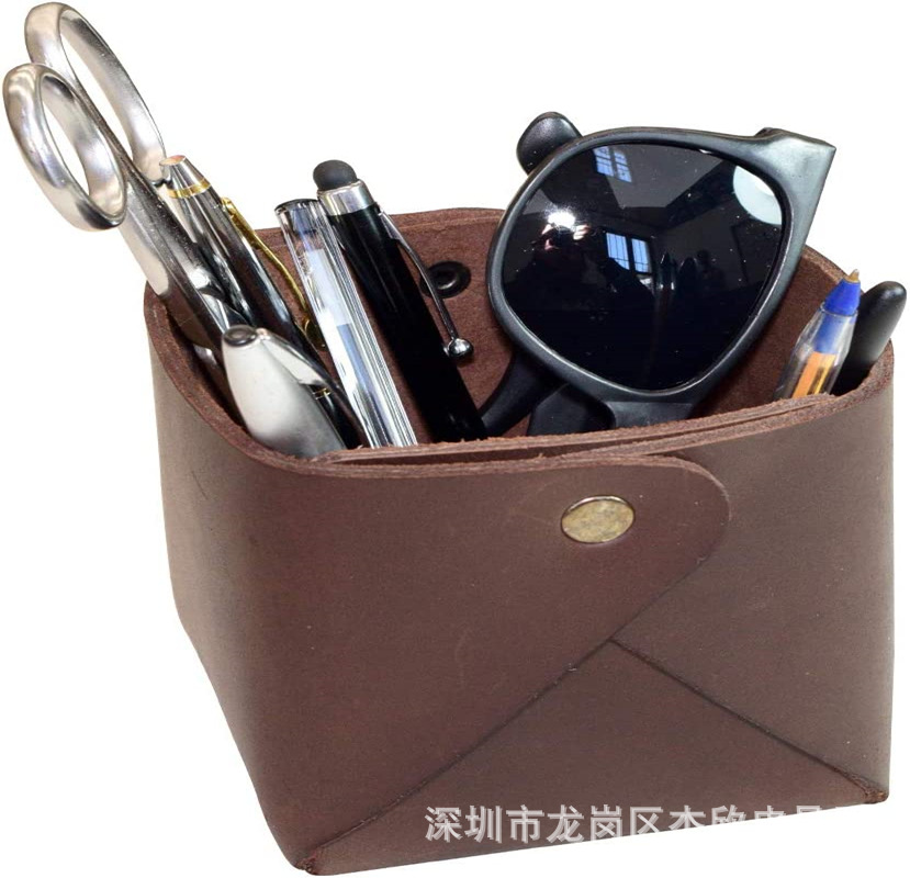 Leather large desk storage box School Office pen storage box cowhide storage box business pen box storage logo