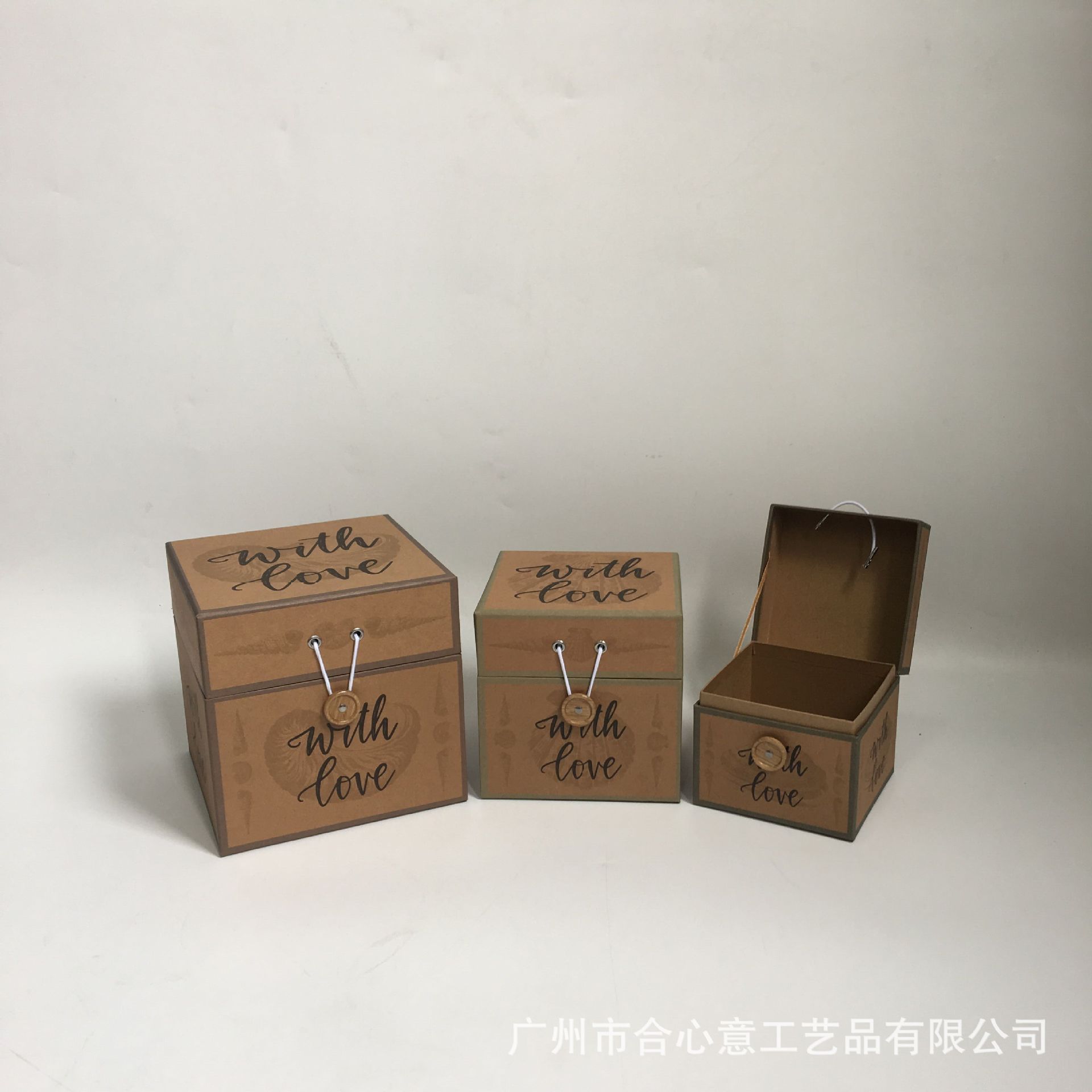 Retro cowhide Square gift box three-piece flower box Eternal Flower soap flower gift box