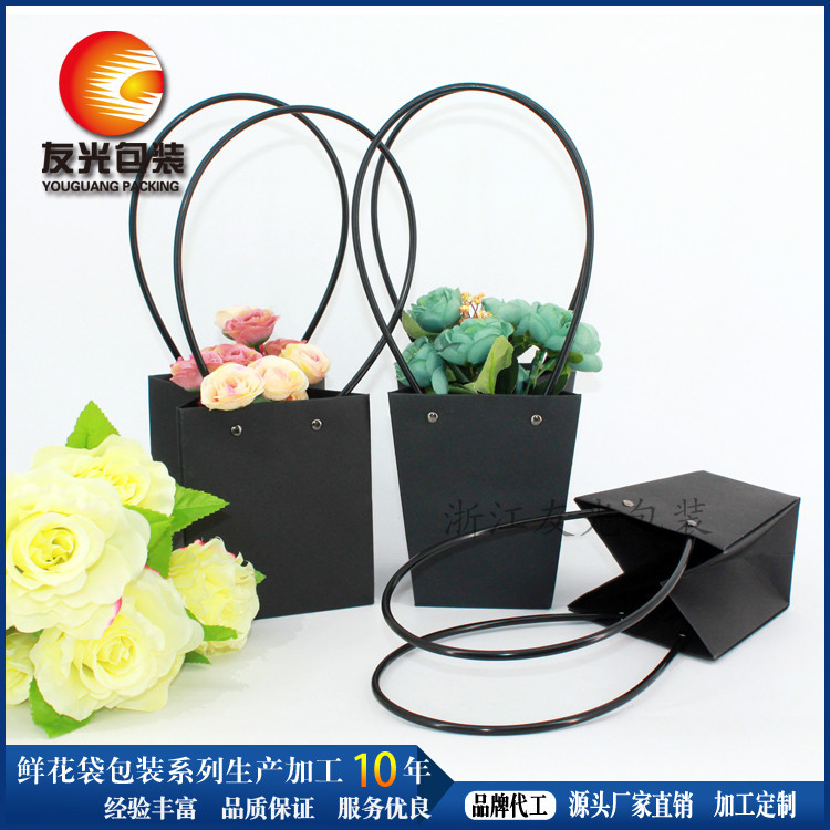 Black Kraft Paper Bag Waterproof Portable Flower Bag Beautiful Mini Flower Box Black Kraft Paper Bag Gift Flower Bag