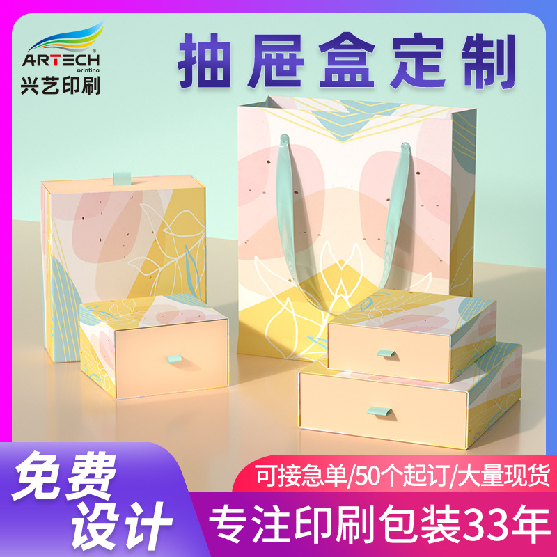 Customized Gift Paper Box Made of Cowhide White Card Drawer Type Color Box Cosmetic Packaging Box Beverage Gift Box Customization